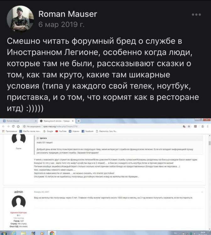 Skif Posted February 14, 2021 Report Posted February 14, 2021 ндаааа...посмотрел я этого чудака на букву М и понял, что такое испанский стыд. ну реально - пургу с умным видом несёт он, а стыдно почему-то мне, не имеющему к легиону никакого отношения. потом глянул его страничку в контакте, и пресловутый испанский стыд обострился до предела - фотка в форме, в графе "военная служба" - "Legion Etrangere 4RE 2CEV 4eme section Франция, 2018–2019", а ведь по возрасту - мой ровесник...что у человека в голове творится, блин. каюсь, в 17 лет были мысли "вот будет мне 18 - поеду в легион", и далее банальщина по списку "ого, ну и зарплата у 13DBLE, как туда попасть?", "ну ладно, на весь контракт не получится, тогда в 2 REP, обязательно в GCP" и прочая хрень в неокрепшем мозгу... многие был наивными дураками в юношестве, тут ничего смертельного нет, но когда тебе уже под тридцатник - это смахивает на какой-то нехороший диагноз. у меня "лечение" подростковой дури было простым - сходил в армию, благо тогда уже всего год служили, ну и как-то успокоился) хотя зафиксировал, что в принципе с армейской системой по чувству юмора вполне совместим, так сказать. а это чудо, видимо, до старости будет юношеским максимализмом страдать. Quote